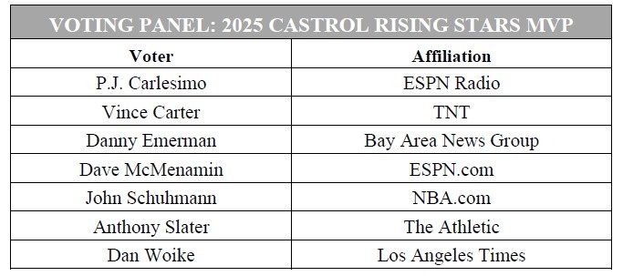 实至名归!新秀赛MVP卡斯尔获得了媒体评审团全部7张选票