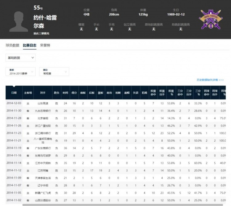 巧合的是,哈雷尔森的下一站也是中国的职业篮球联赛。他现在是在2013-14赛季加入了还在NBL的重庆翱龙篮球俱乐部,随后又和队伍一起征战了2014-15的CBA赛季。