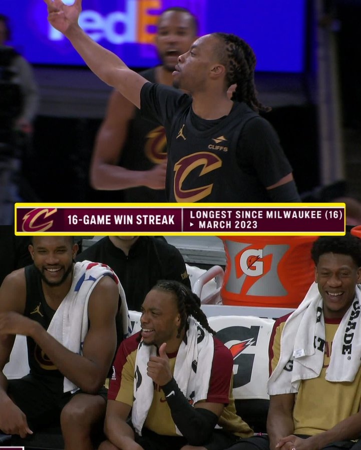 转播方给出数据,骑士的16连胜也是自2023年3月的雄鹿以来,联盟最长的连胜纪录。