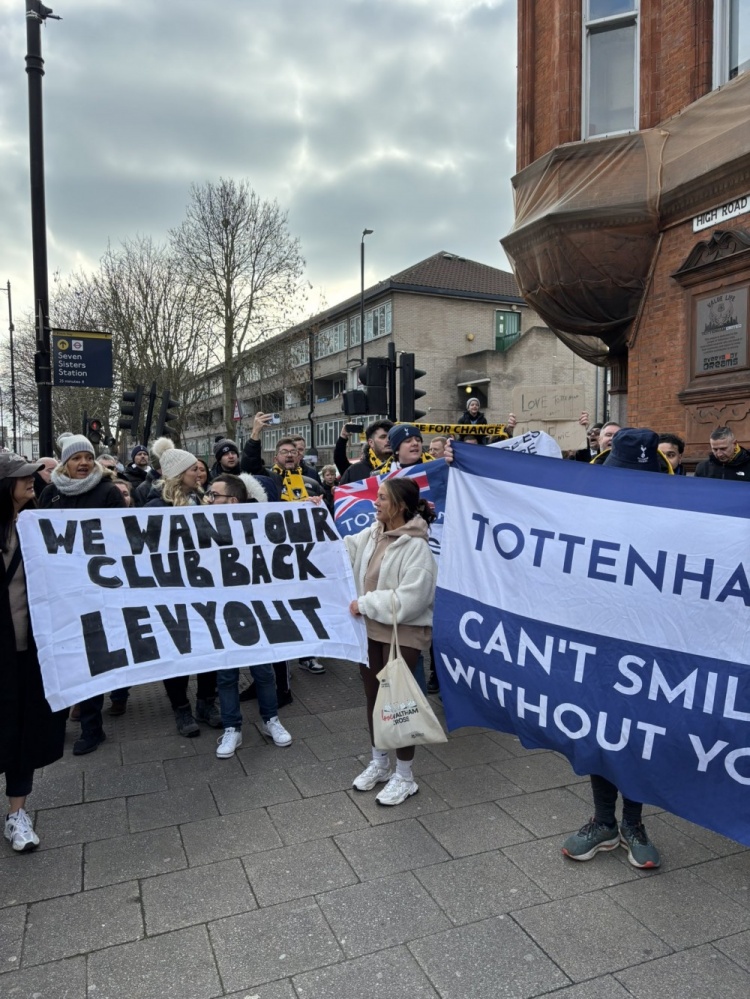 在本场比赛开赛前,部分热刺球迷组织了抗议俱乐部的活动,表示对俱乐部老板、俱乐部主席列维等的不满。
