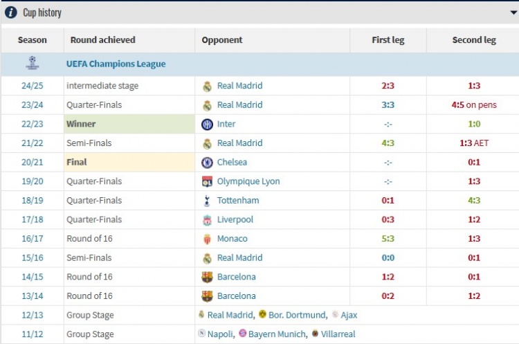 根据德转统计,自1992年欧冠改制后,曼城参加了14次欧冠,本赛季是时隔11个赛季之后再度无缘晋级16强。