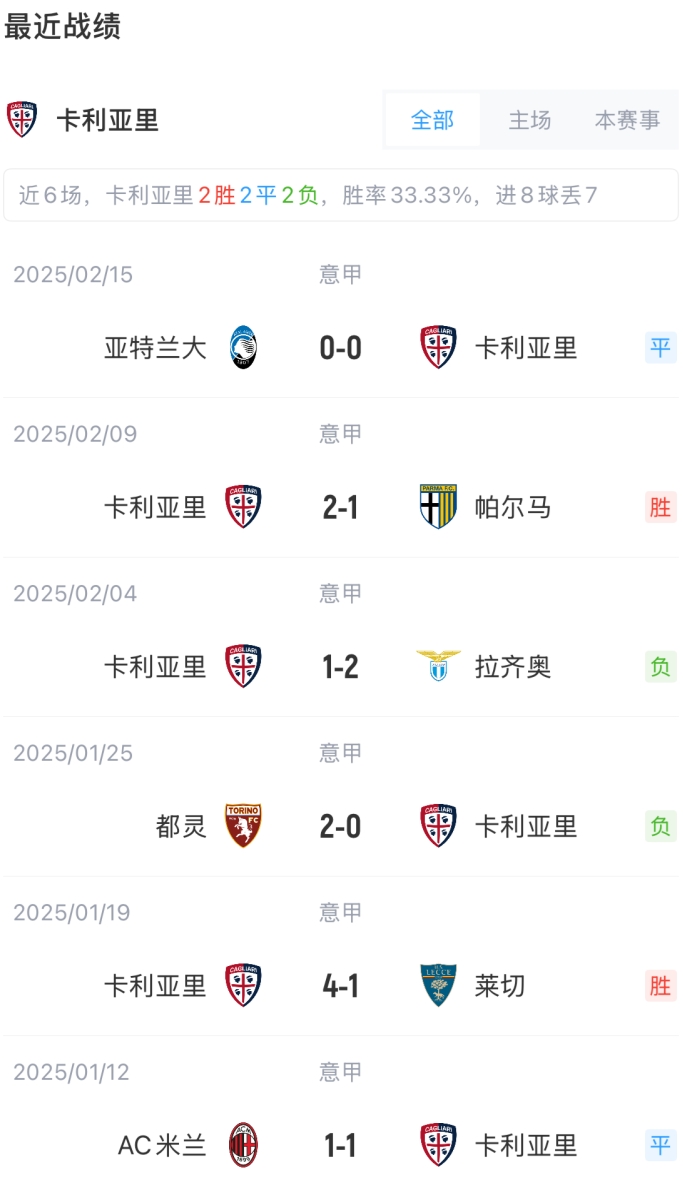 2月24日讯 意甲第26轮,卡利亚里主场迎战尤文比赛即将打响。赛前首发出炉。