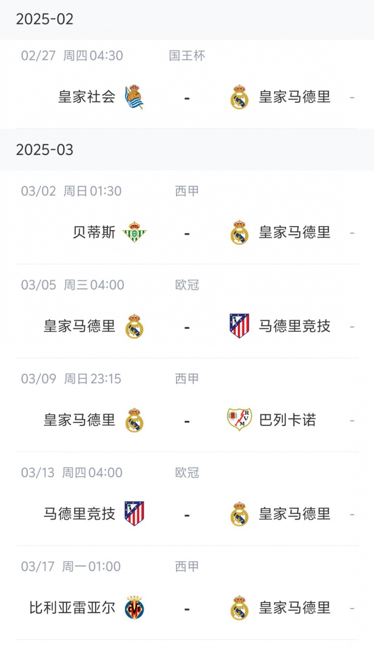 皇马则同样面临紧张的赛程,六场比赛仅两场在伯纳乌进行,需要客场挑战皇家社会、贝蒂斯和比利亚雷亚尔,同时还要应对欧冠对阵马竞的比赛。
