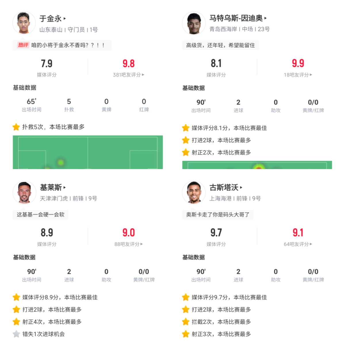 02月24日讯 重磅开启中超每轮最佳球员票选,中超首轮最终当选的球员为——山东泰山的门将于金永。这位20岁的小将险胜津门虎前锋基莱斯,他仅仅只比基莱斯多1.7%的选票。