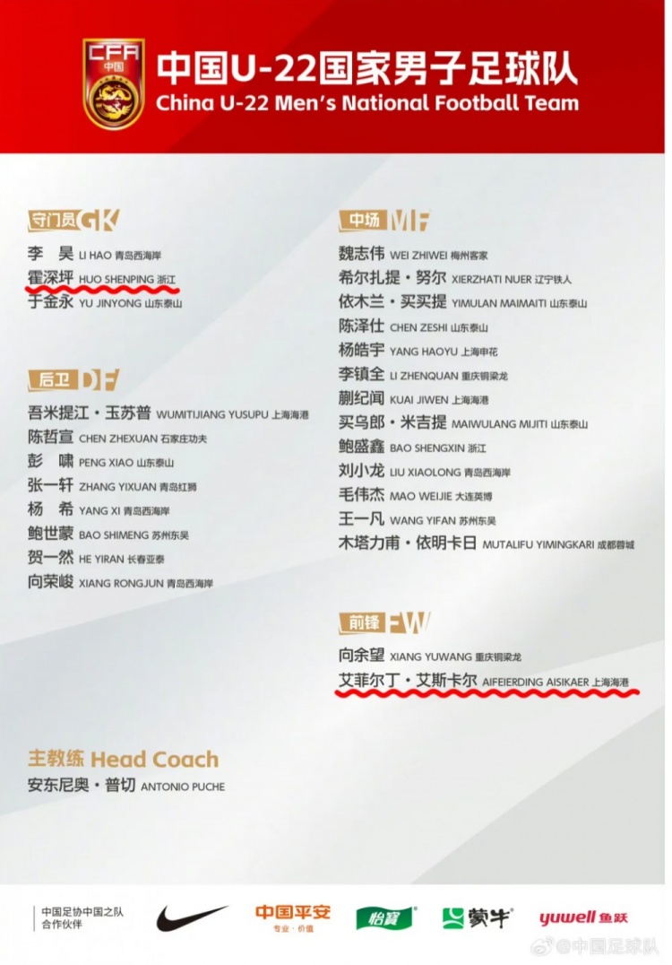 恭喜!恒大足校培养球员霍深坪、艾菲尔丁入选U22国足