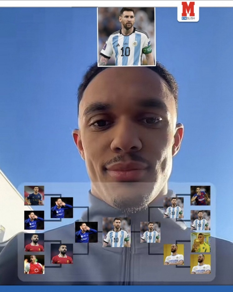 随后,阿诺德在阿扎尔和萨拉赫之间选了阿扎尔;梅西和本泽马之间选了梅西;最后阿扎尔与梅西之间,阿诺德选择了后者。