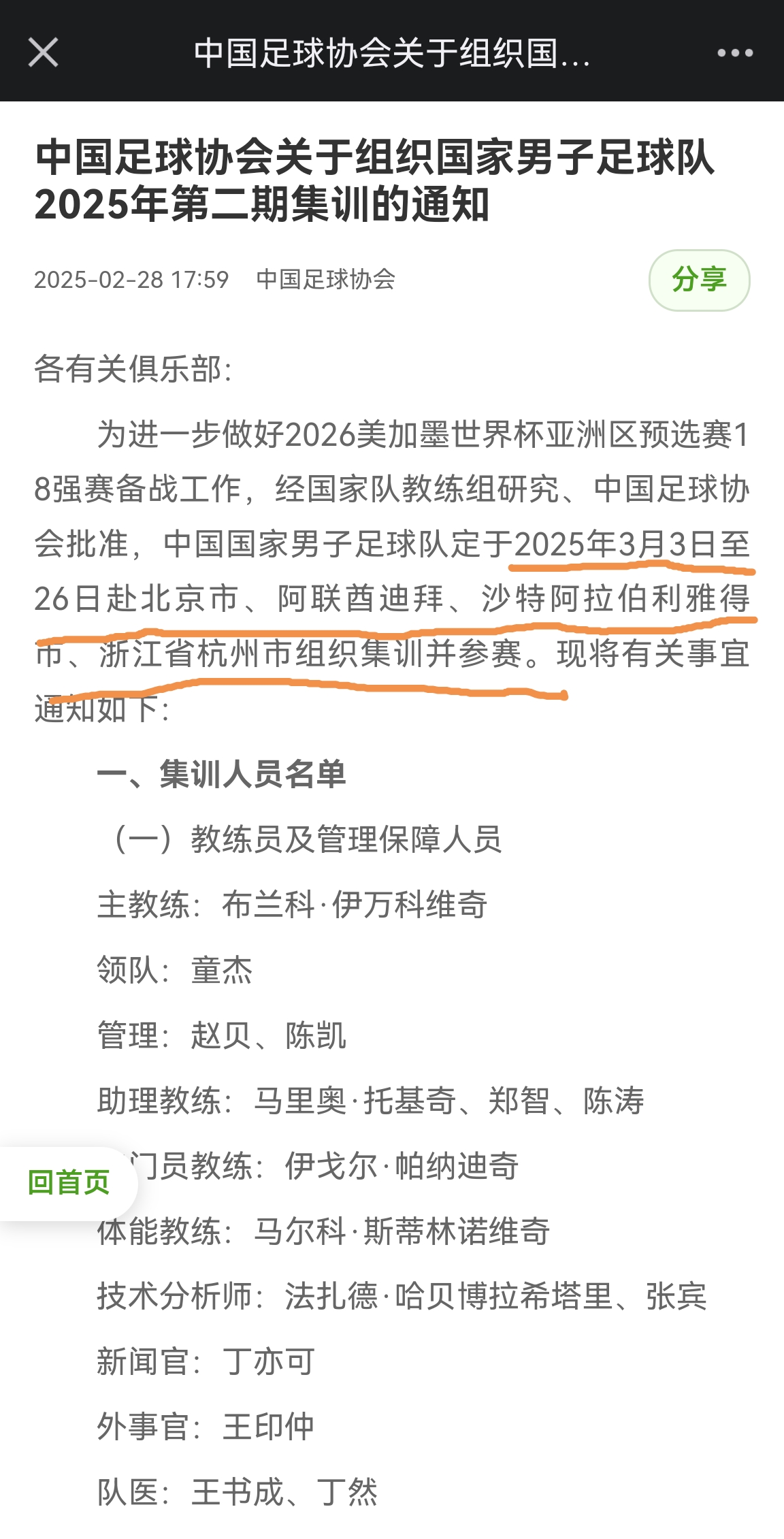 中国足协在公告中明确指出将进行为期23天的集训+参赛