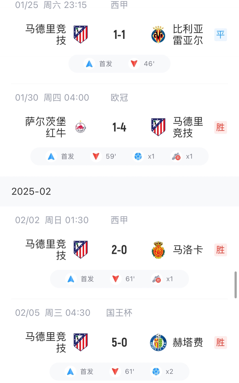 02月05日讯 马竞在本轮国王杯主场5-0血洗赫塔费,西蒙尼的三儿子朱利亚诺-西蒙尼本场打进2球。