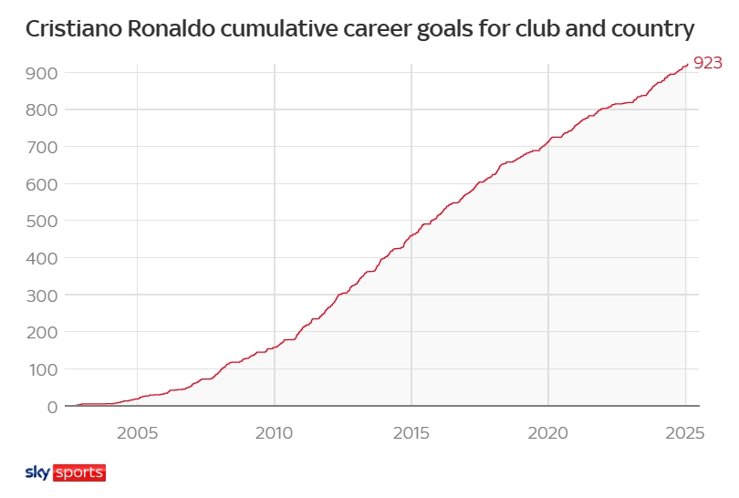 天空体育按照C罗目前的进球效率和年龄计算,得出结论:C罗有望在41岁时达成职业生涯1000球的成就!