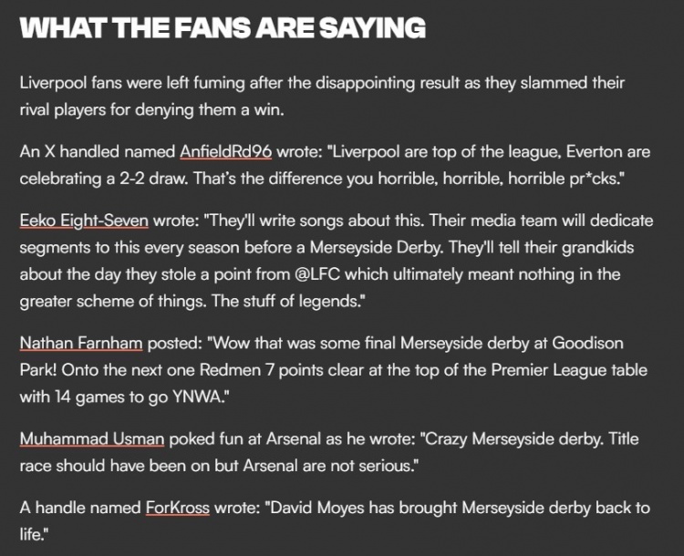 Nathan Farnham:哇,这可是在古迪逊公园进行的最后一场默西塞德德比(25-26赛季埃弗顿将搬入新主场)!现在利物浦握有7分优势,联赛还有14轮。